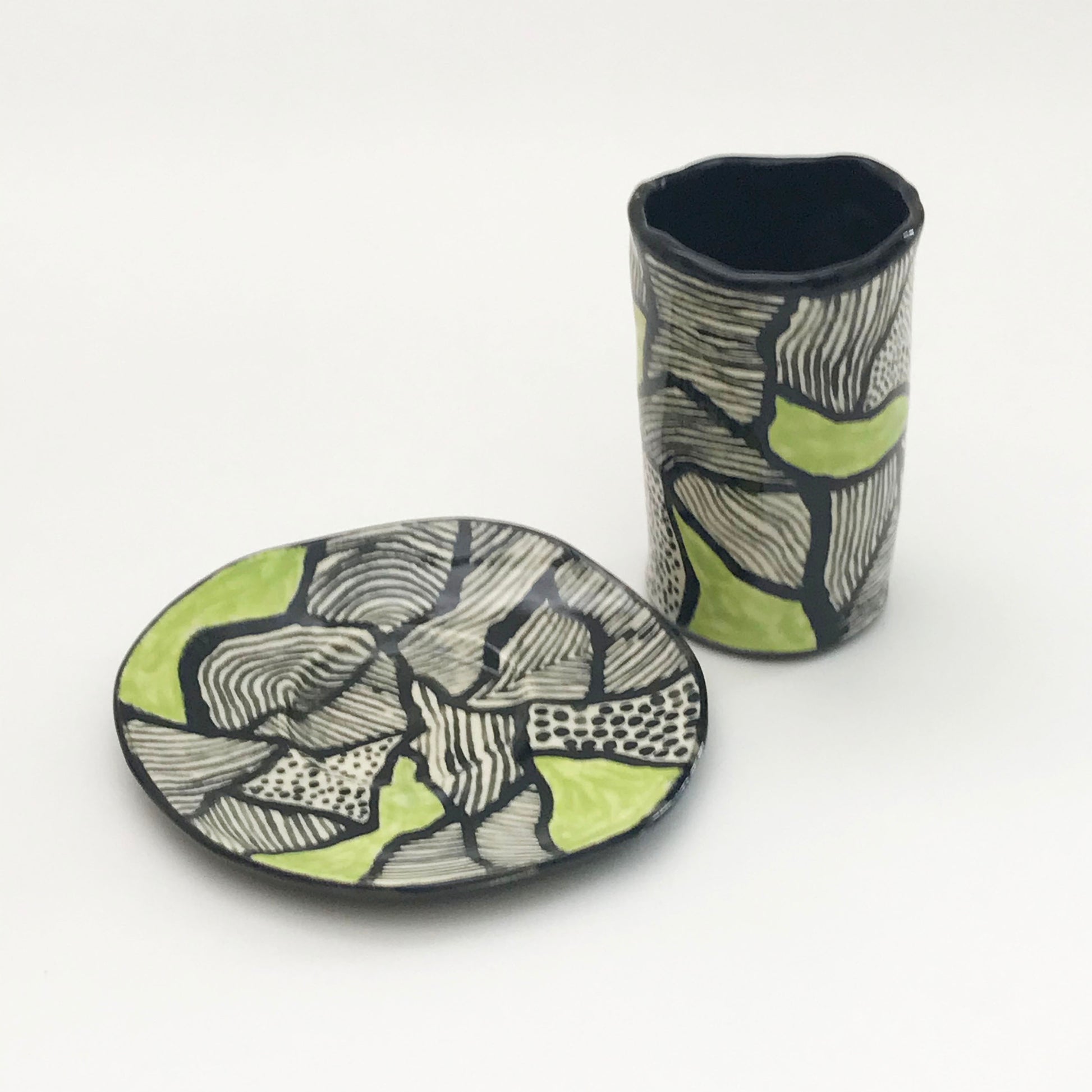 This kiwi green Saba Cup & Saucer is fired in an electric kiln at a high temperature and is completely food safe. Though it is meant for hot tea, one can be creative to use it for anything from espresso to a container for a succulent!